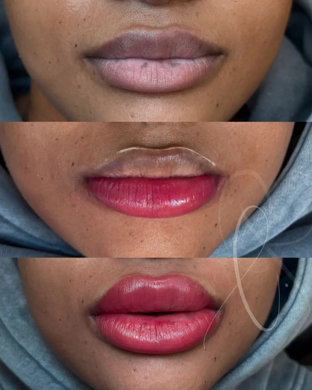 No major downtime here. Just a smooth healing process and lips you’ll be excited to show off as they reveal their full color.